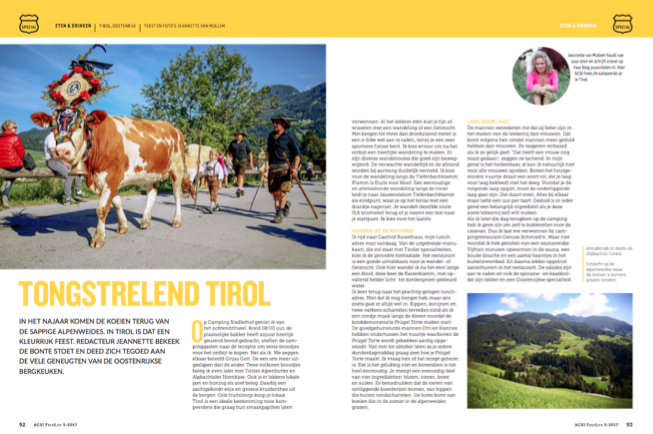 Jeannette van Mullem houdt van puur eten en schrijft erover op haar blog puuruiteten.nl. Voor ACSI FreeLife kampeerde ze in Tirol. Lees het artikel in ACSI FreeLife.